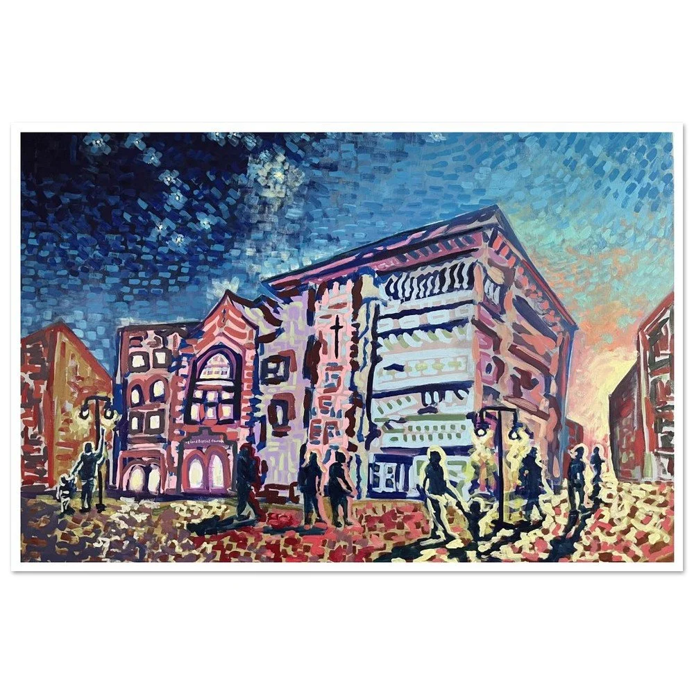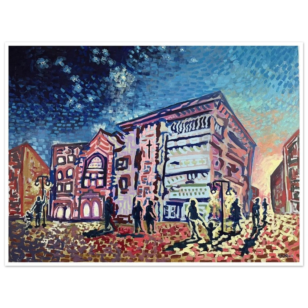 The old Inn like a Beacon, the lights at night over Portage Lake